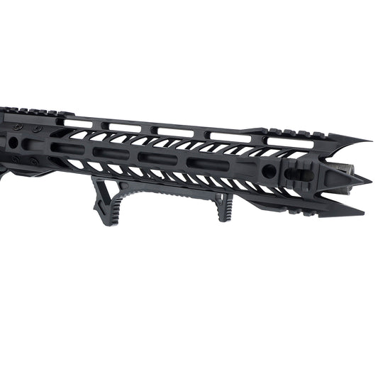 This lightweight handguard has sufficient clearance to tuck (or bury) a LPM Mach-L (1.74" diameter), has slightly loose anti-rotation tabs that work on billet uppers, has a good finish and deburred edges that won't destroy your hands, and has plenty of M-Lok space for all your accessories.