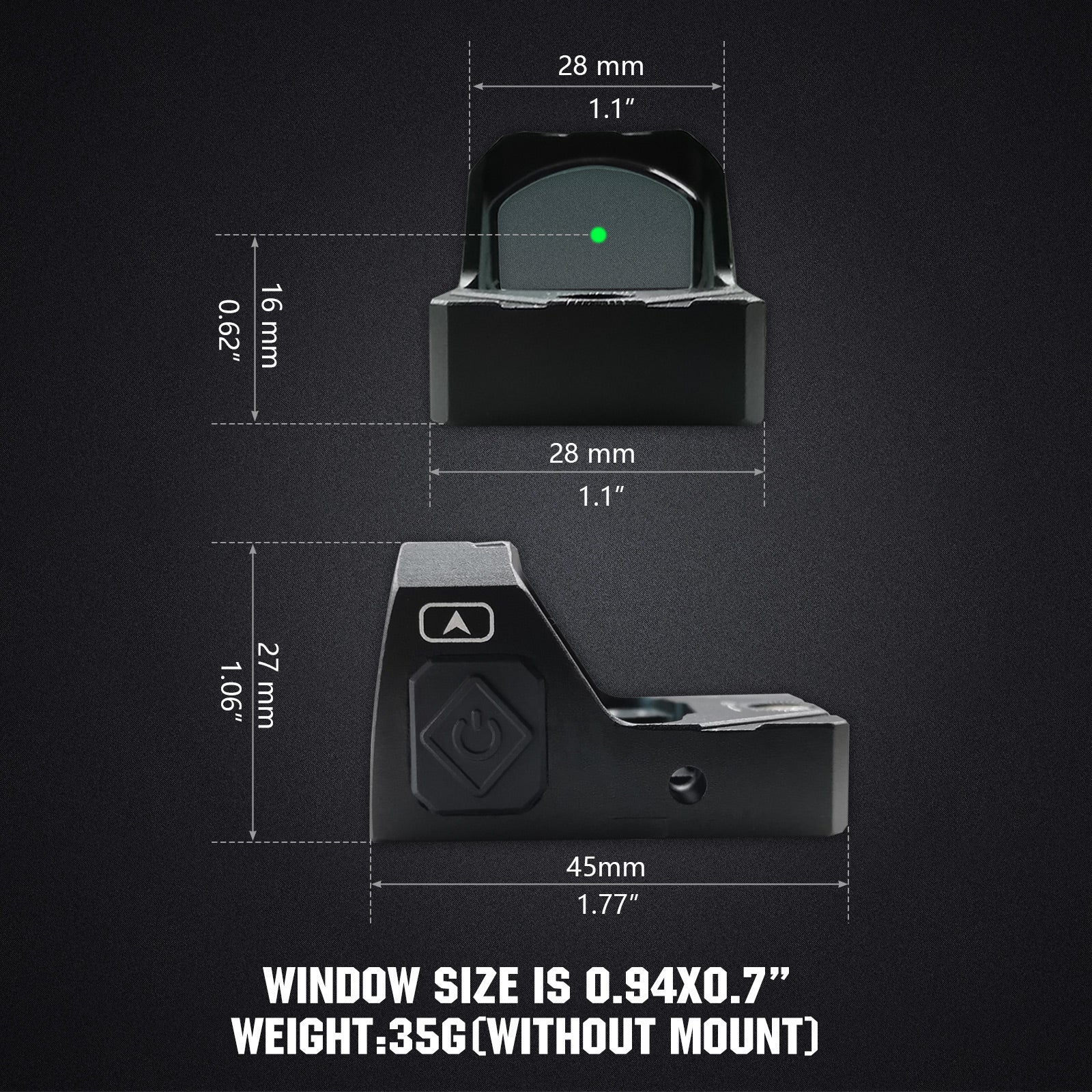 ohhunt® 2 MOA Shake Awake Grünpunktvisier, kompatibel mit Picatinny-Montage oder RMR-Footprint