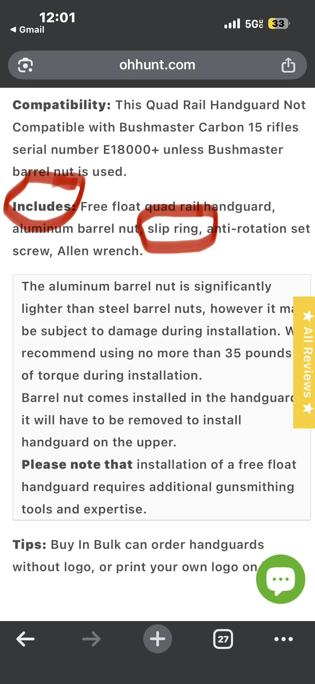 Compatibility: This Quad Rail Handguard Not Compatible with Bushmaster Carbon 15 rifles serial number E18000+ unless Bushmaster barrel nut is used.