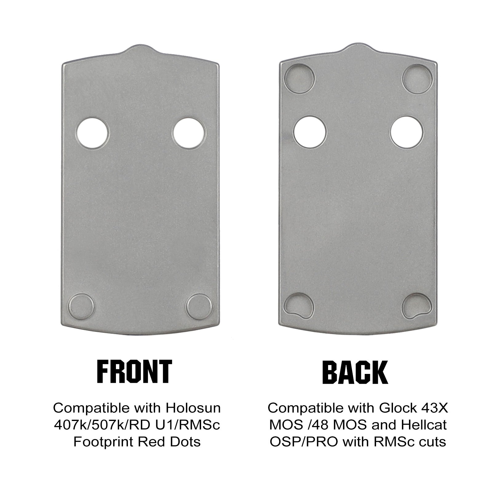 • Optic Compatibility: Optic cut for Glock 43X MOS /48 MOS and Hellcat OSP/PRO with RMSc cuts.