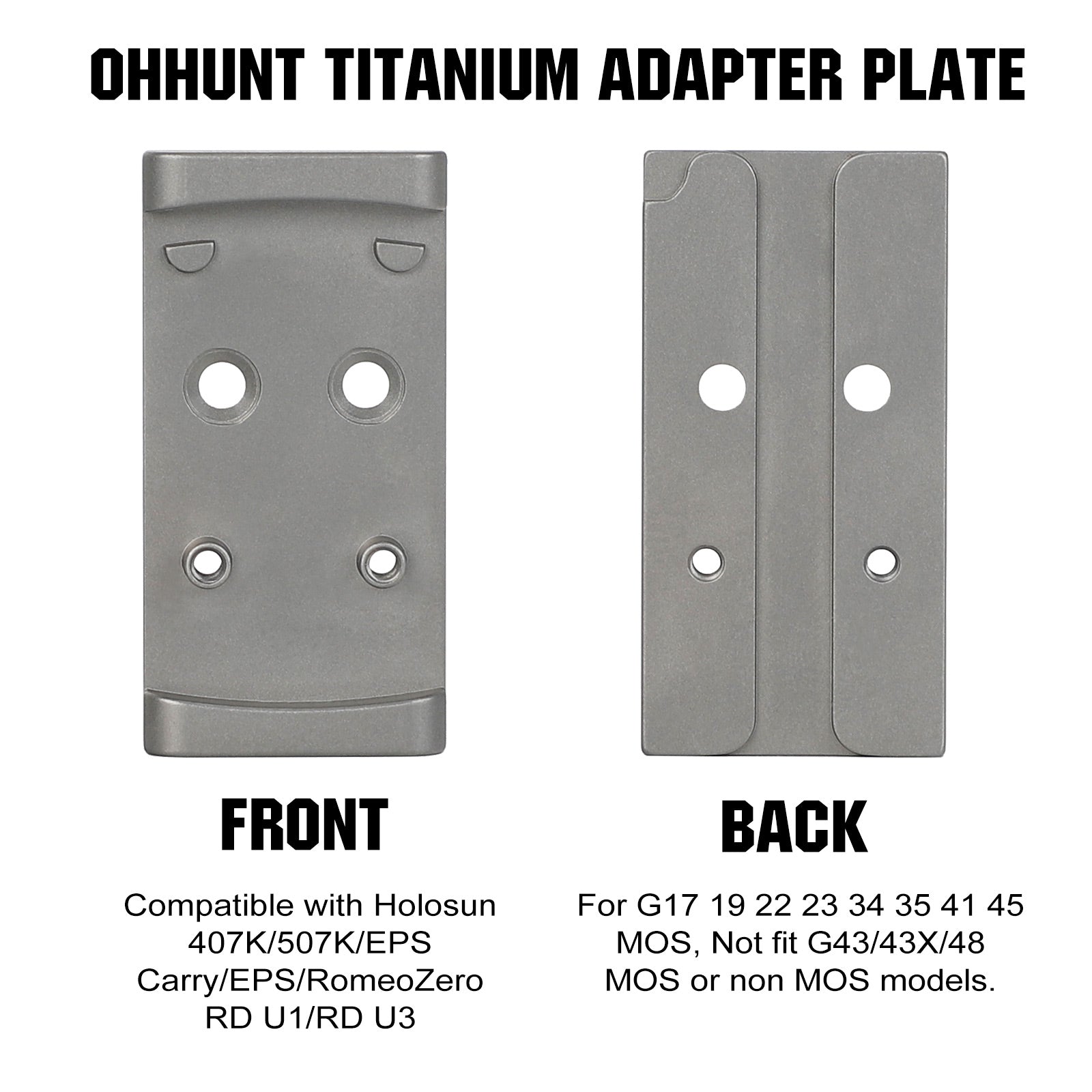 ohhunt® Titanium Adapter Plate Compatible with RMSc Cut Optic Holosun 407K/507K/EPS Carry/EPS/RomeoZero/ohhunt RD U1/RD U3 for Glock 17 19 MOS