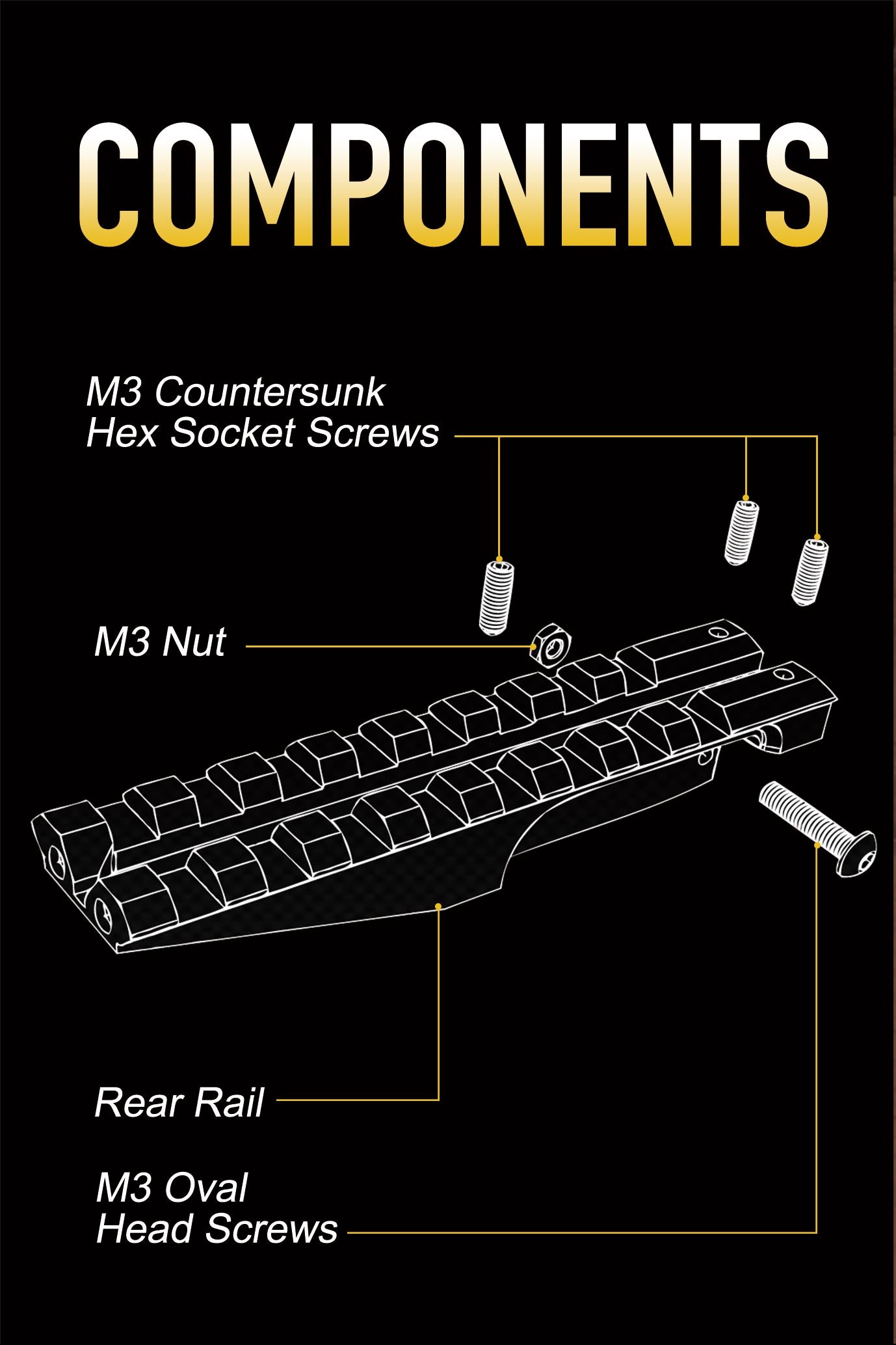 1. To remove this AK rear rail set, it is recommend to loosen all 3 hex socket screws before removing the screw.