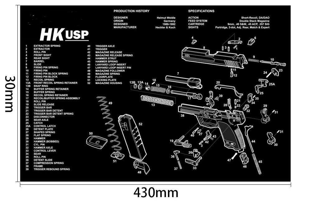 Ohhunt Armorers Bench Mat Gun Cleaning Mat HK USP With Parts Diagram & Instructions Mouse Pad