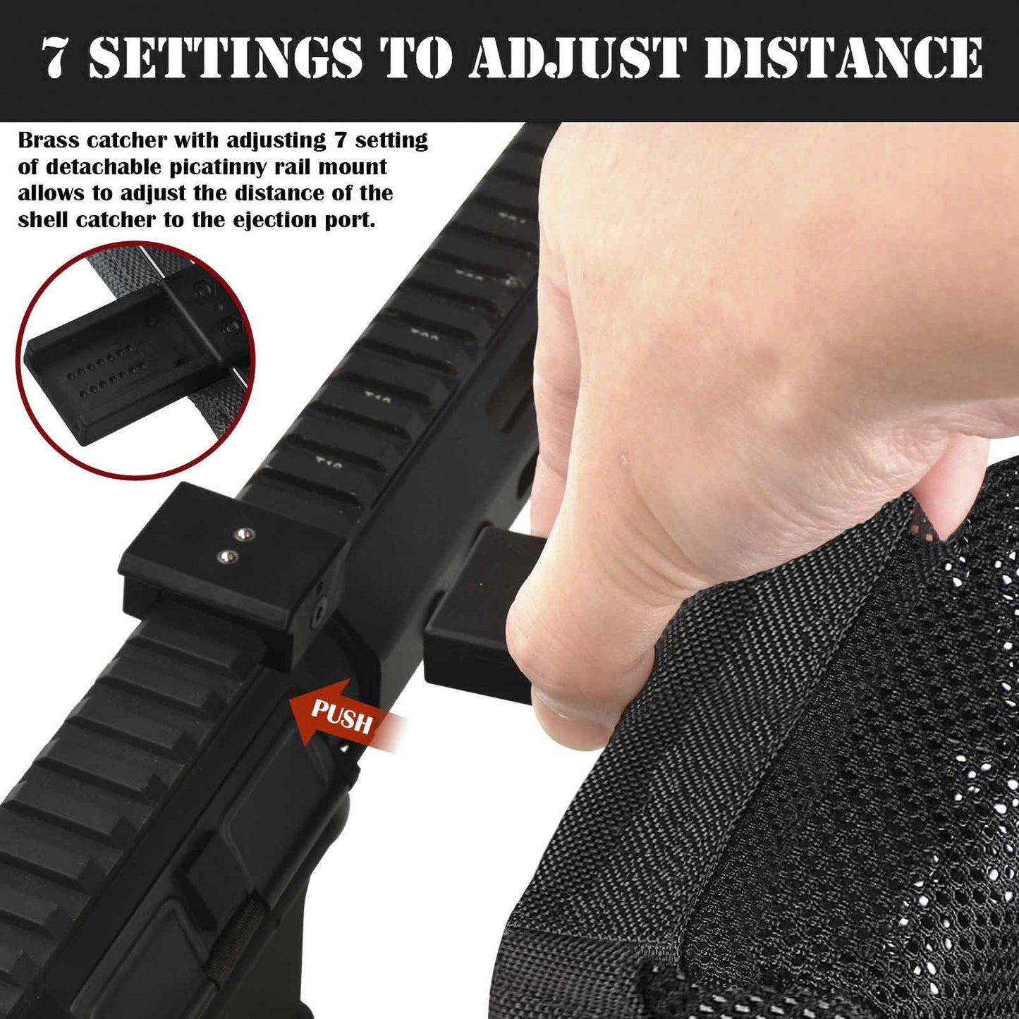 • Brass catcher with adjusting 7 settingof detachable picatinny rail mount, allows to adjust the distance of theshell catcher to the ejection port.