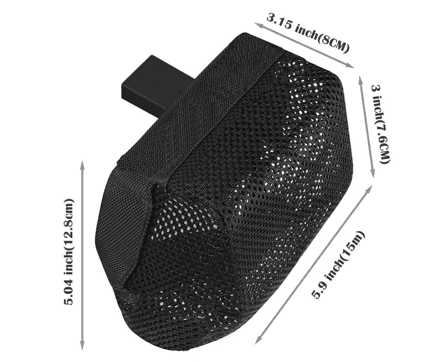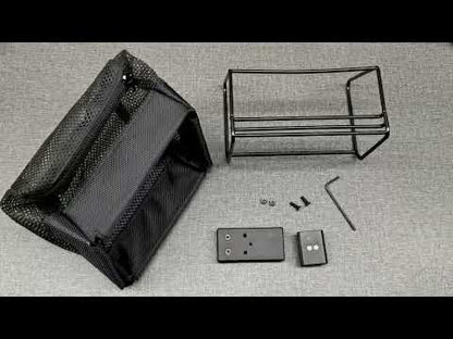 • Do not over tighten the clamp screws,the mesh bag can slide back and forth,you can mount anywhere and.