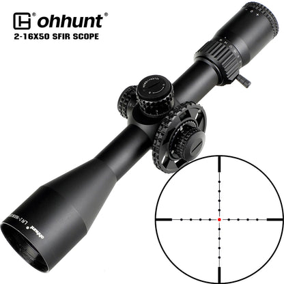 ohhunt® LR 2-16x50 SFIR Tactical Rifle Scope with Glass Etched Reticle Side Parallax Turrets Lock Reset Large Hand Wheel