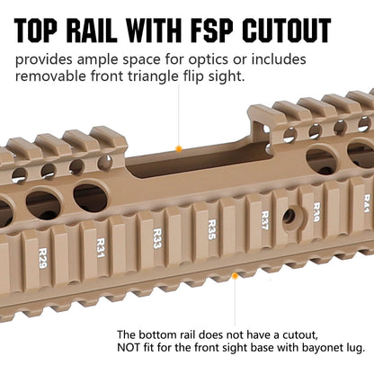 Desert Tan M4A1 Handguard with FSP Cutout Quad Rail Free Float Two-pieces Design for AR-15 - 12.7 inch